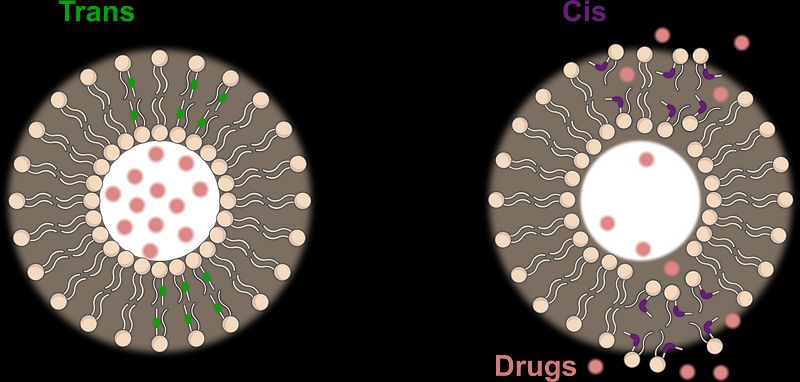 Cartoon illustration of photo-activated lipids for drug delivery